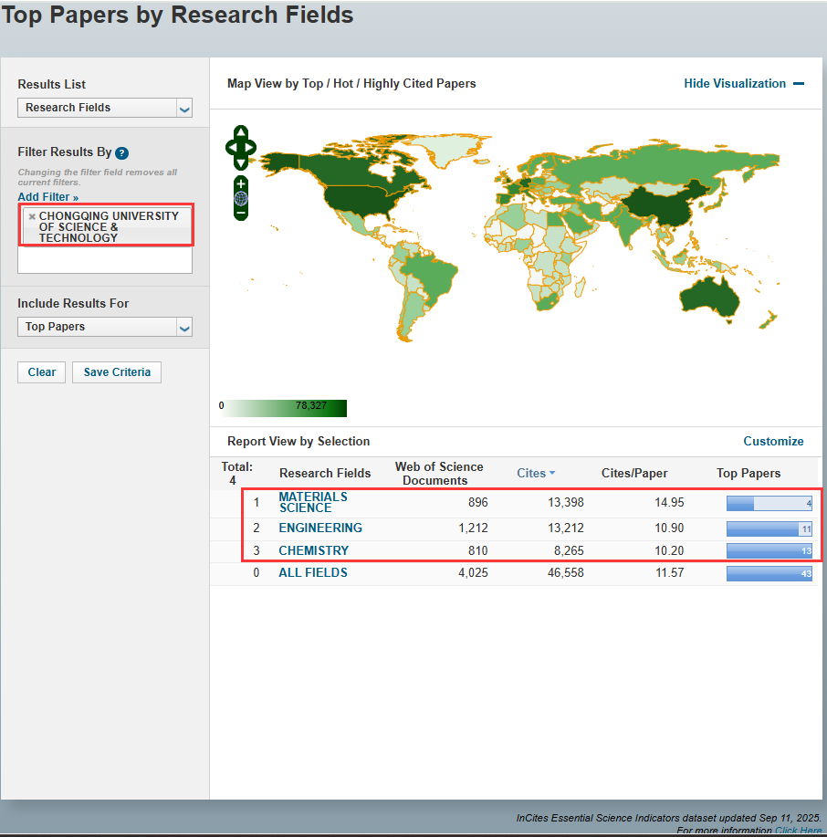根据科睿唯安公布的Essential Science Indicators(基本科学指标,简称ESI)最新数据显示,重庆科技大学化学(Chemistry)学科首次进入ESI全球排名前1%,标志着该校在化学学科领域的科研实力和学术影响力迈上了新台阶。这也是该校继工程学和材料科学后第3个进入ESI全球排名前1%的学科。