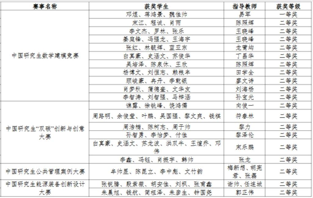 优异成绩的取得,得益于学校的统筹规划与各牵头学院的精心组织、协同发力。数理科学学院作为中国研究生数学建模竞赛牵头学院,组建研究生数学建模竞赛指导组,分阶段对参赛队员开展培训,最终斩获一等奖1项、二等奖10项、三等奖9项;冶金与动力工程学院作为中国研究生“双碳”创新与创意大赛牵头学院,积极动员学生参赛,全力做好赛事的指导和服务保障工作,最终获得全国二等奖6项、三等奖2项,实现了我校在该项赛事中的历史性突破。